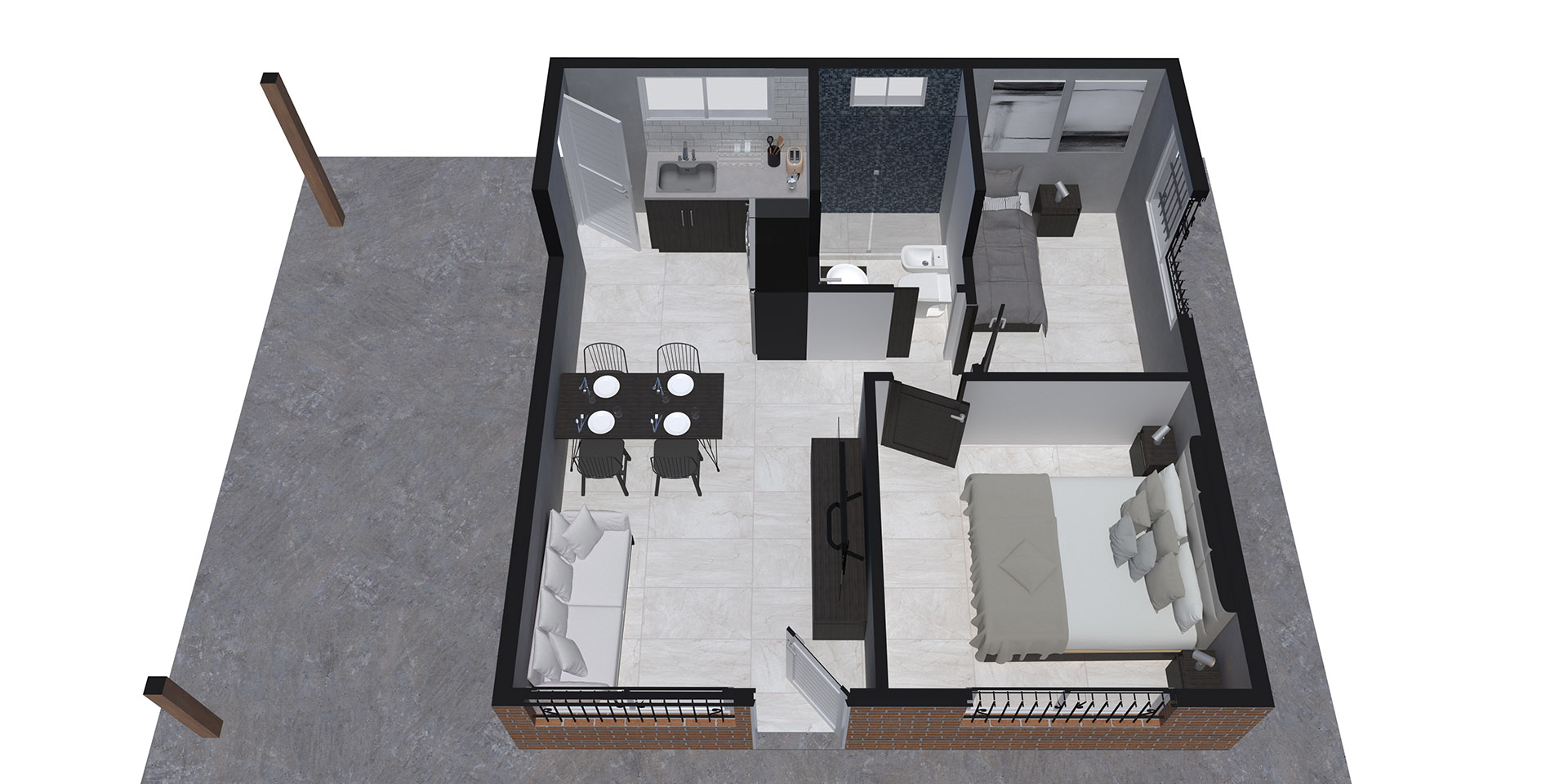 EXTERIOR: revestido en placas cementicias laterales y