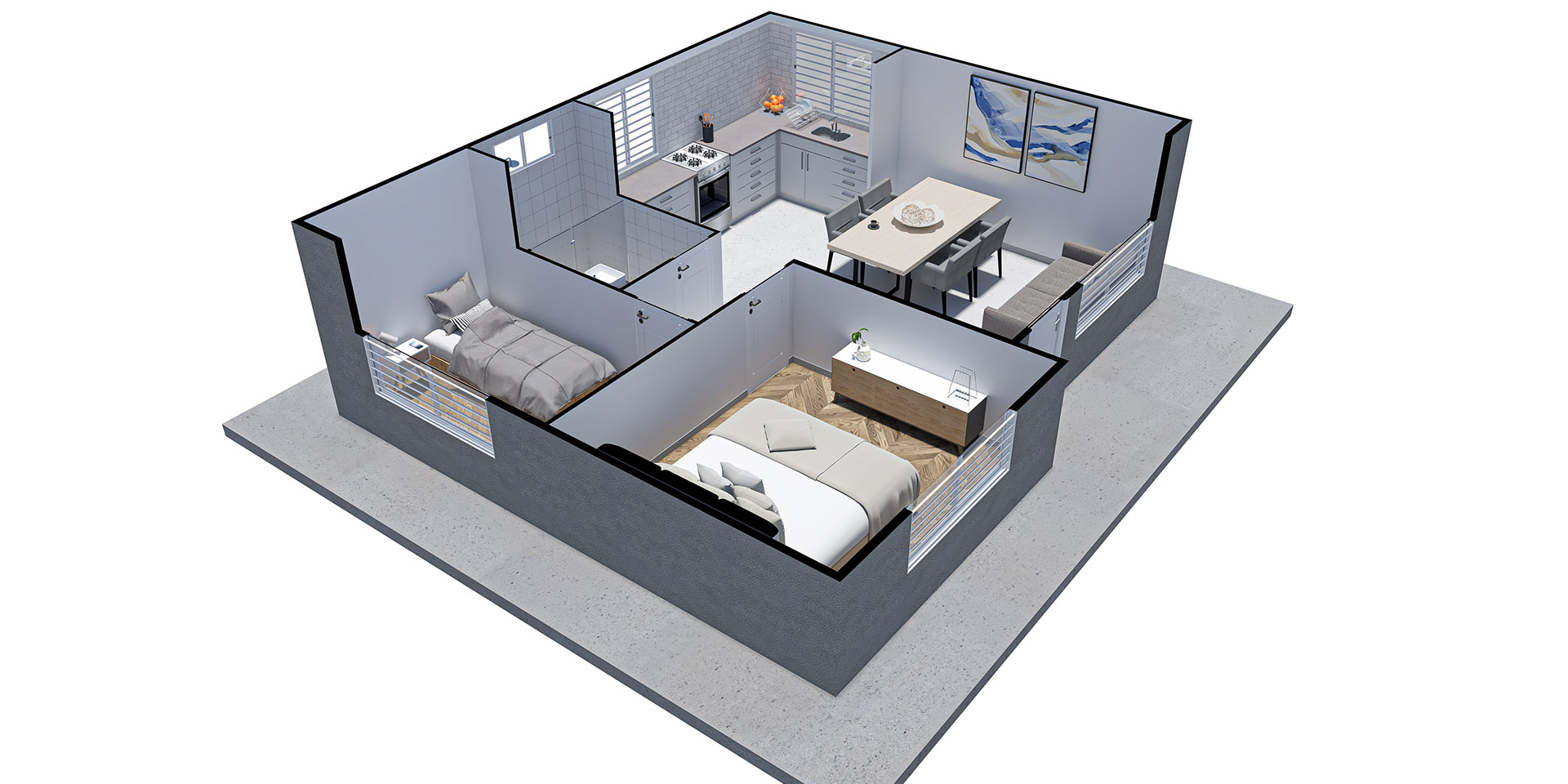 PANELES EXTERIORES: Revestidos con placas cementicias Eternit, aptas para cualquier tipo de revestimiento o terminación.